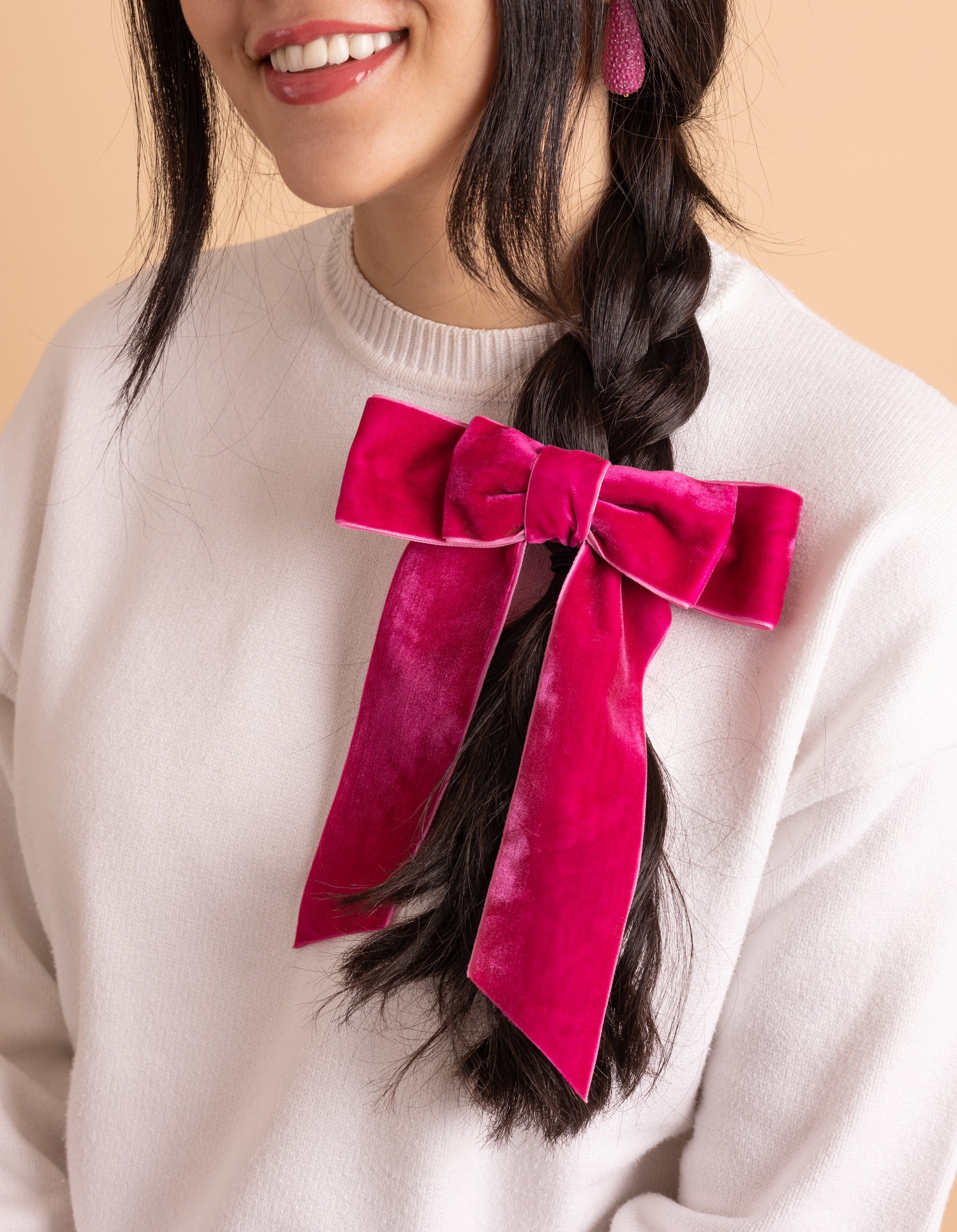 Our handmade Pink bow is made of high-quality velvet fabric that gives a fun and elegant look.