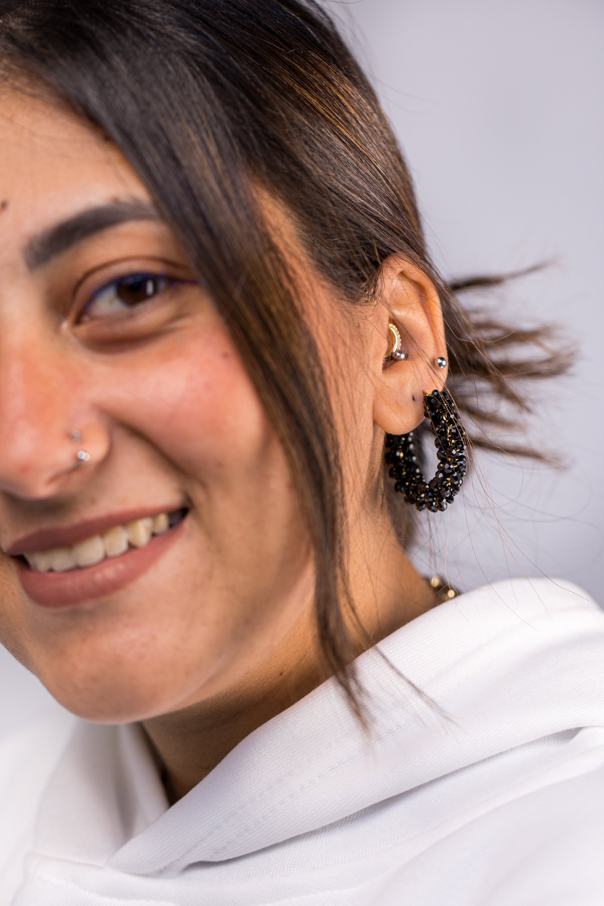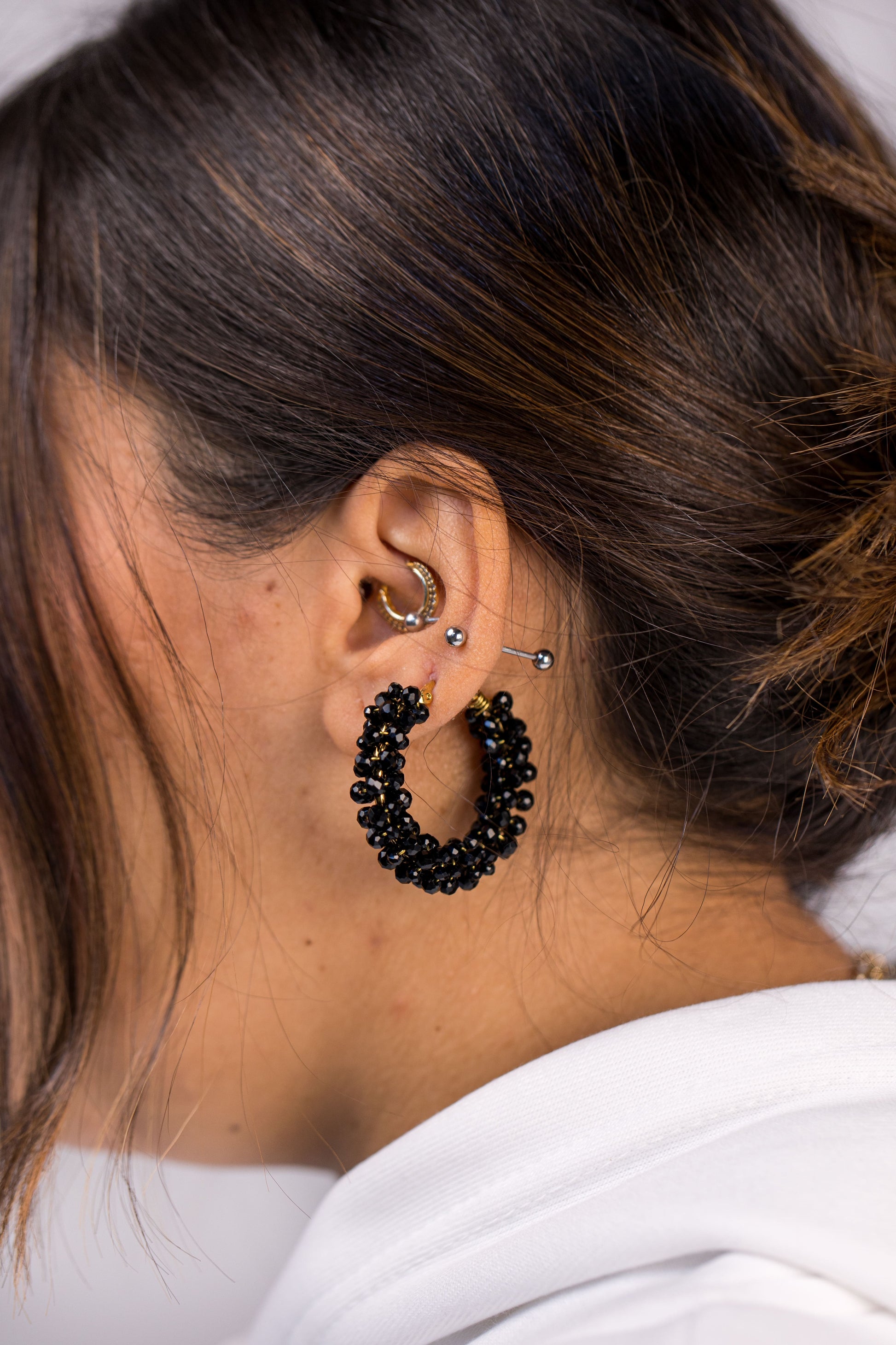 - Description: A beautiful pair of earrings in classic black, these star cluster earrings are just the thing to make a statement. Crafted in different tiny sizes of black crystals to give the feeling of elegance, these earrings are perfect for any occasion