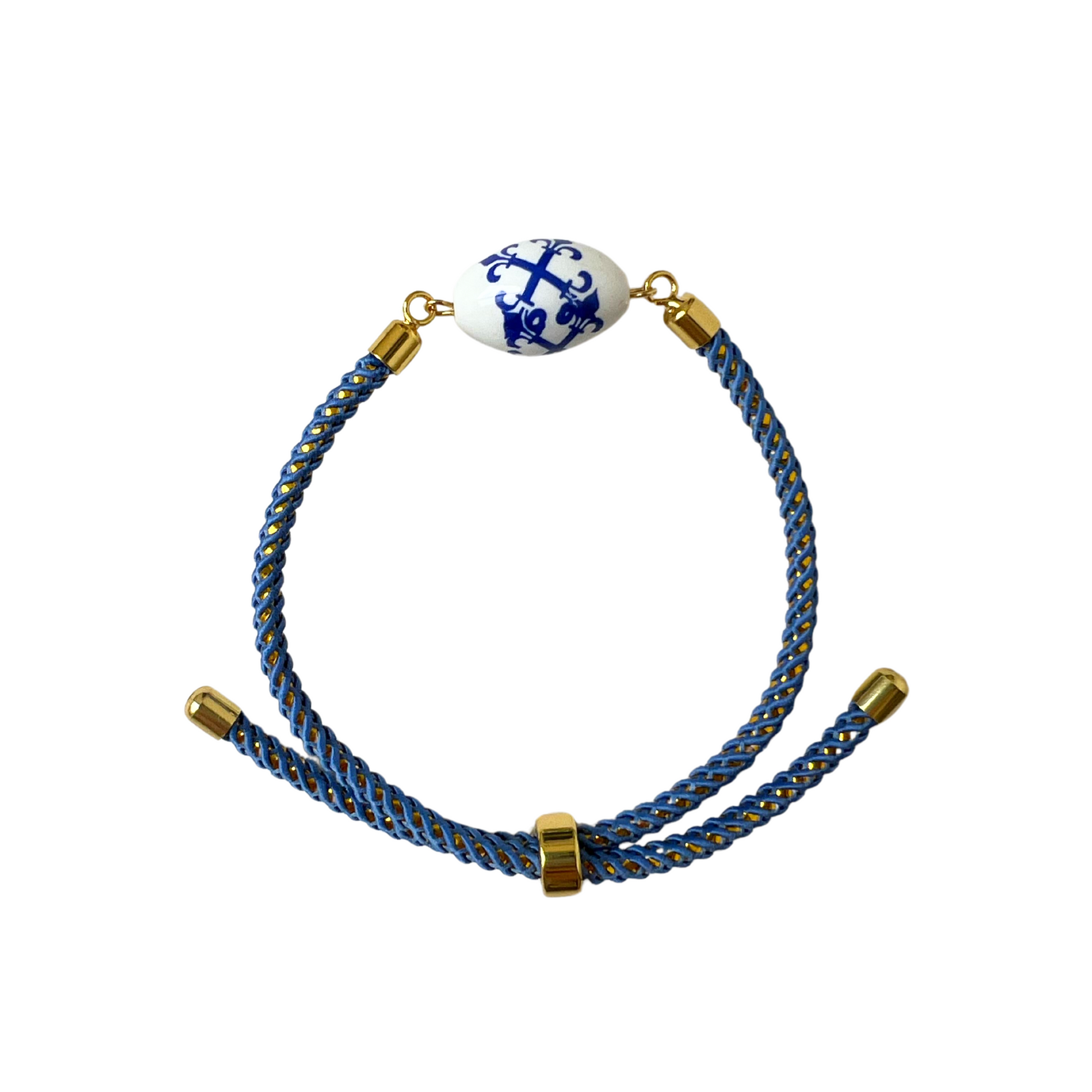 Travel to the stunning shores of Santorini with our Blue Santorini bracelet. The mid-blue ceramic bead beautifully reflects the colors of the Aegean Sea, bringing a touch of coastal elegance to your look.